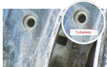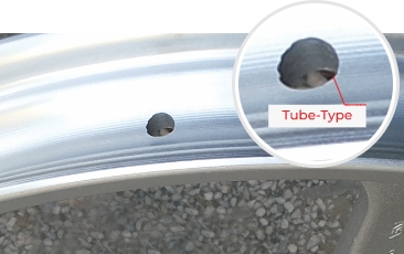 With tubeless rims, the hump of the wheel locks the bead, preventing it from dislocating even when air pressure is low.